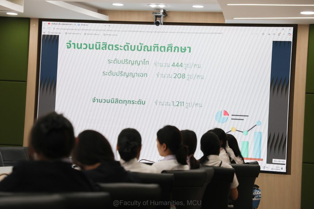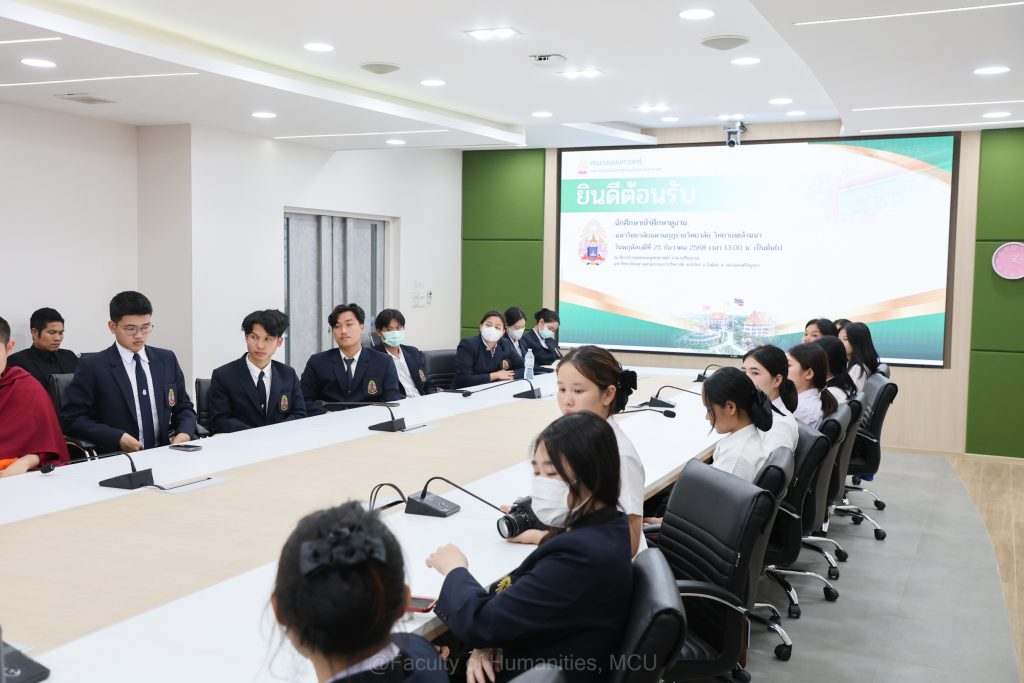 __คณะมนุษยศาสตร์ มหาวิทยาลัยมหาจุฬาลงกรณราชวิทยาลัย นำโดย พระครูภัทรธรรมบัณฑิต, รศ.ดร. คณบดีคณะมนุษยศาสตร์ ให้การต้อนรับคณะผู้บริหาร คณาจารย์ และนักศึกษาจากมหาวิทยาลัยมหามกุฏราชวิทยาลัย วิทยาเขตล้านนาในโอกาสเข้าศึกษาดูงานและแลกเปลี่ยนความคิดเห็นด้านการจัดการศึกษา