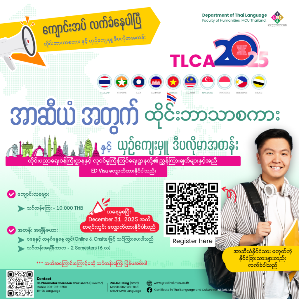 • A student can pursue a B.A. in Thai Language of Mahachulalongkornrajavidyalaya University after completing the TLCA Certificate program.